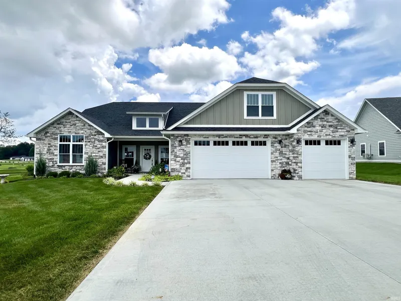 Stunning Newer Construction Home in Stonecrest Golf Community Between Bedford & Bloomington. Welcome to this spectacular 2024 New Construction home, offering 3 spacious bedrooms and 3.5 luxurious bathrooms, and a finished bonus room with a full bathroom over the garage. Step inside to be immediately captivated by the floor to ceiling stone fireplace with gas and soaring cathedral ceilings in the main area. Lovely custom-designed kitchen, with stunning cabinetry, quartz countertops, and stainless appliances. The primary bedroom is a true retreat, including en suite primary bath with tiled floors & shower, and dual separate walk-in closets—one on each side of the bathroom for ultimate convenience. Relax on your back deck while watching golfers enjoy their game against the stunning backdrop of the Stonecrest Golf Course. This home is an exceptional blend of modern luxury and timeless charm—perfect for those who want to experience the best of both worlds in one of the area's most desirable communities.