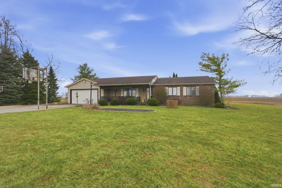 Enjoy country living with quick access to Highway 30. Spacious ranch home with a finished basement on just over one acre in a quiet setting near New Haven. Larger rooms throughout, along with a wide-open basement, offer flexibility and potential for additional living or recreation space. Three bedrooms, including a primary bedroom with a private bath, plus main floor laundry. Covered front porch, large back deck, attached two-car garage, and detached garage. Fenced backyard ready for goats or other small animals, with a functional agricultural shed on the property.