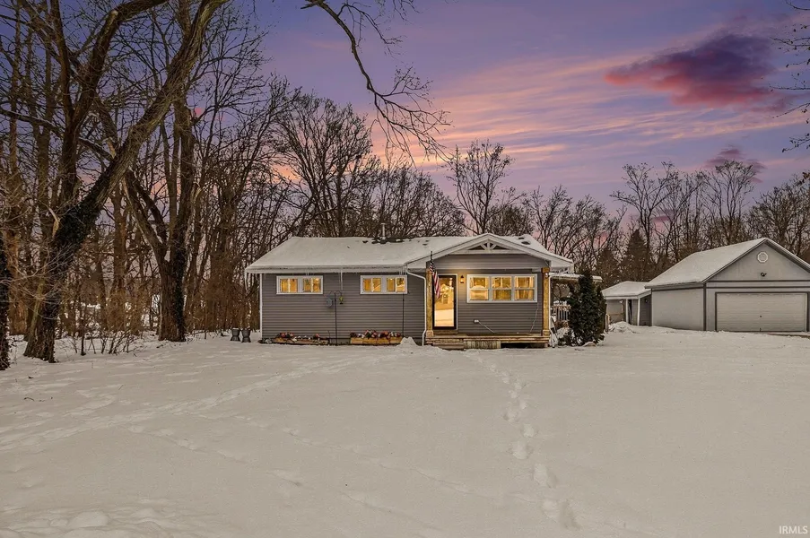 OPEN HOUSE SATURDAY 2/21 10AM-12PM! Set on over an acre in the PHM School District, this beautifully remodeled one story home blends comfort, space, and flexibility in all the right ways. Step inside to an open concept layout where a vaulted living room ceiling and striking electric fireplace create a warm, inviting centerpiece. The bright white kitchen flows effortlessly into the living space and features an island with seating. The main level offers three bedrooms and a beautifully updated bathroom with a double vanity for added convenience. Downstairs, the walkout basement opens up even more opportunity, including a room with an egress window for a potential 4th bedroom, plumbing already in place for a 2nd bathroom, and additional space ideal for a second living area. Outside, enjoy the freedom of a large detached garage, a covered side deck, and expansive yard, while still being close to Elkhart and Mishawaka. With roof, HVAC, and septic replaced in 2019 and a professionally waterproofed basement, this home offers peace of mind and room to grow. A perfect fit for first time buyers or those looking to downsize without giving up land, this home is ready for its next chapter.
