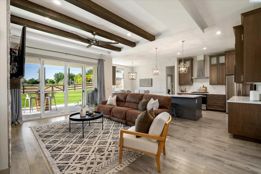 Nestled in one of the Tri-Cities' most desirable communities, this custom-built luxury residence offers 2,319 sq ft of refined living where wine country elegance meets small-town charm. This isn’t just a home—it's your gateway to the Pacific Northwest lifestyle you've always envisioned! WINE COUNTRY AT YOUR DOORSTEP Indulge your passion for fine wines with Columbia Valley's world-class wineries just minutes away! This home is designed for connoisseurs, featuring TWO full wine bars with coolers—one elegantly positioned in the dining room and another in the spacious bonus room, complete with a private bath and breathtaking city views. The soaring ceilings adorned with wood-beam accents, a floor-to-ceiling stone fireplace, and ceiling-height custom cabinets paired with quartz countertops create the perfect ambiance for entertaining friends after a day of wine tasting. YOUR ADVENTURE HEA...