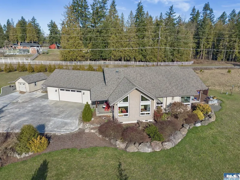 All things bright and beautiful and practically new in desirable Happy Valley! This ten year old custom rambler boasts 2022 square feet with 3 bedrooms and 2 bathrooms on 2.65 spacious acres. It was built by Cornerstone, one of the best builders on the Peninsula, and is minutes from town, but has the feel of country living with beautiful bucolic views of Happy Valley, Bell Hill, Burnt Hill and the Olympics. This home has 9 foot ceilings throughout, with a spectacular vaulted ceiling in the third bedroom. The great room boasts a floor to ceiling natural stone propane fireplace, a dining area with a built-in china cabinet and a kitchen to surpass your dreams with locally built solid cherry custom cabinets, gas cooktop, wall oven, ten foot custom live-edge wood bar, and a walk in pantry. Gorgeous wood-look plank tiles are in the main living areas and huge corner windows are throughout th...