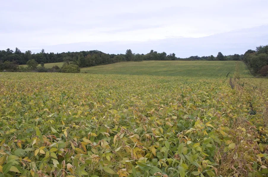 Beautiful land, now in soybeans, some of the State's very best - with panoramic views that just never stop. And it's located at the end of a dead-end road. A quality piece of land, hard to find. 133 are tillable here, the remainder wooded. Some of the woods could be converted to additional crop land.