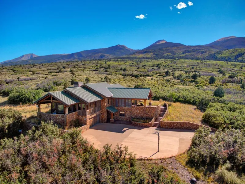 Named for its endless periwinkle skies, millions of stars and incredible sunrises/sunsets, Sky Haven at Maytag Mountain Ranch is a stunning 5,709 square foot homestead situated on 100 deeded acres of Colorado splendor in Cotopaxi. Private and tucked into its end of the road location against the rugged Sangre De Cristo mountain range, the property directly borders San Isabel National Forest and offers endless recreational opportunities. The three bedroom, five bathroom home of timber and stone was placed upon the acreage so that each wing has a distinct vista of specific landscape; Eagle Peak and the Sangre de Cristo mountains directly to the West, the Collegiates and numerous other mountains to the North, the Wet Mountains to the East and scrub oak and wildflowers that lead to the twenty-nine mile long Rainbow Trail to the South. While most of the acreage is in its natural state, the grassy areas near the home are watered with a sprinkler and drip system and four concrete patios exist for relaxation and entertaining while surrounded by amazing scenery. Wildlife abounds here with mule deer, elk, peregrine falcon, and black bear to name a few species.