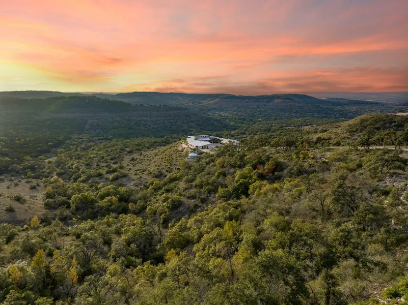 Introducing an extraordinary Hill Country haven in Wimberley that transports you to a world of refined luxury and serenity. This property sprawls across 50 fully fenced acres with the main home perched on a beautiful mesa overlooking the Blanco River Valley - A natural spectacle that sets the stage for a residence like no other. Located minutes from downtown Wimberley, this ranch provides easy access to Austin, Kyle, Dripping Springs, New Braunfels, San Marcos, and San Antonio. The small town of Wimberley is situated where Cypress Creek and the Blanco River meet, amidst rolling hills and sprawling countryside. The main residence embraces 360-degree views of the valley-featuring two owner's suites and an inviting living room with a limestone-encased fireplace, the home bathes in natural light throughout. The kitchen is a chef's dream, complete with a built-in Sub-Zero refrigerator, Wolf r...
