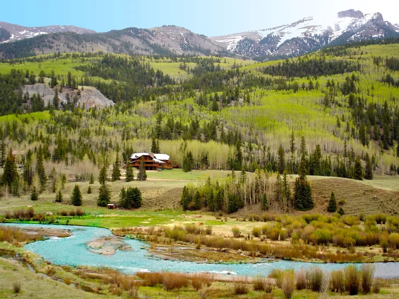 Sleeping Ute Ranch is a 281.7 acre property located in the San Juan Mountains of Colorado. The ranch offers stunning scenery, abundant wildlife, and various recreational opportunities. Improvements include a lodge, 2 cabins, a caretaker house, and 2 additional buildings for ample accommodations. It also features a 39,000 sqft riding arena & equestrian facilities making it a great investment for those seeking a mountain retreat or a sportsman's paradise. The property borders over 2 million acres of public land, providing endless possibilities for exploration and hunting. Water is plentiful on the ranch with 5 wells, water rights, access to Lake Fork River, and a custom built trout lake.