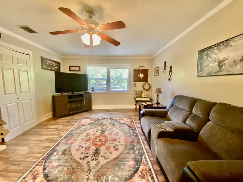 This one bedroom, one bath residence is situated on just over 5-manicured acres and is perched on an elevated hill amongst scattered oak trees. Its scenic views are a welcoming sight which can be enjoyed from the covered porch overlooking the rear of the property. Inside, you’ll be impressed by the kitchen with lots of cabinetry, a nice sized kitchen island for preparing meals, and the all-stainless-steel appliances. Just off the kitchen is the primary bedroom which has ample space. Inviting family over will be a must with the large living room perfect for hosting events during the holidays and special occasions. Additional dry storage space is included with the home, which can be accessed from the covered carport or from the living room. So, whether you’re a first-time buyer or looking to retire and get away from the busy lifestyle, then give us a call today to schedule a tour of this beautiful home!