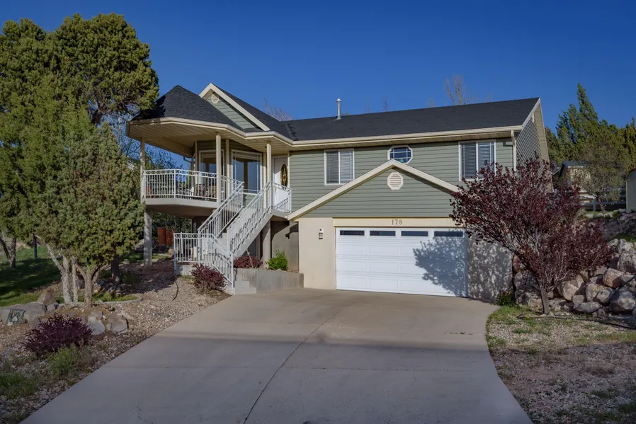 Experience million-dollar views of the mountains or the 4th of July fireworks from the covered deck of this absolutely adorable two-story home nestled into the hillside of one of Cedar City's favorite neighborhoods. The home is located on the quietest cul-de-sac street with quick access to I-15 and town conveniences. The main level has everything you need in a single level home, while the basement adds additional space for the family to hang out. The kitchen boasts wood cabinetry, Corian countertops, and a generous corner pantry. The family room adds cozy warmth with a gas fireplace and beautifully etched French doors opening up to the serene back yard. Both levels have plenty of additional storage with built-in hallway cabinetry and a full basement wall of custom shelving. The master bath includes a good-sized walk-in closet, separate shower, and jetted tub. The home has been recently updated with new LVT and carpet, a new AC unit, and a roof that is less than 4 years old. Come and see what makes this home so unique and experience the tranquility and peace for yourself!