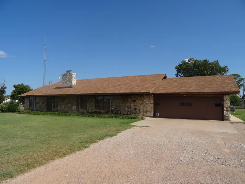 Well kept native rock home built in the '70s on 20.15+/- acres. Central heat/air, 2 living areas, skylights, double paned windows. Spacious master bedroom with floor level hot tub in master bath. Covered porches both front and back. City water as well as 3 water wells. Large front and back yards. Storage building in back. Barn with 4 stalls, equipment shed, fields for livestock grazing or hay production. Perimeter fencing around property. Less than 15 minutes to Abilene.