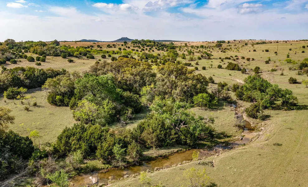 The property has been operated in recent years for cattle production and hunting. There are several fields that were formerly in cultivation, which could be put back in production or planted in improved grasses. Patterson Branch transverses though the southwest quadrant of ranch. This is a good flowing, spring-fed creek with rock bottom and deep holes that has water year-round. The southern portion of the ranch is heavily wooded, and the northern portion is more open. There are large live oaks, elm, and hackberry trees scattered throughout the property. The south end has a large area of Postoak trees in the sandier soils. Cedar is heavy in some areas on the south portion and there are also a few scattered mesquites in some areas. The terrain is rolling with deep valleys and high mesas with excellent views of the surrounding countryside. The elevations range from 960 feet along the creek to 1,100 feet above MSL on the mesa in the north end of the property.