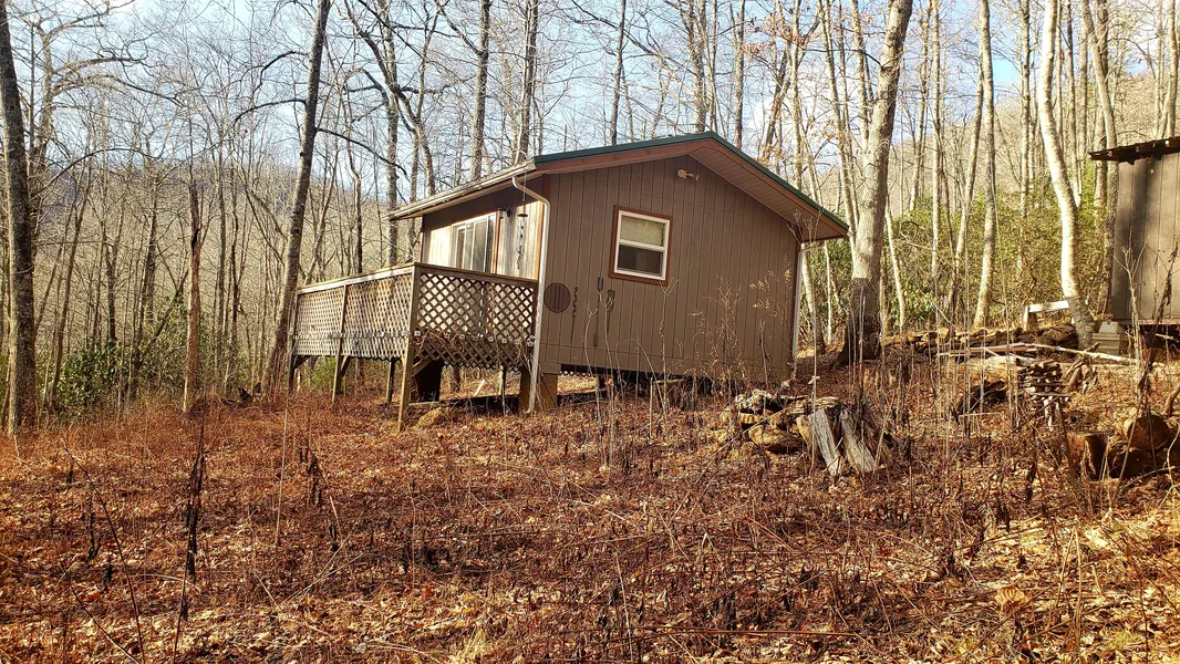 Tiny living in big spaces! Cute and efficient cottage, situated in the woods, adjacent to one of several babbling brooks flowing through this 55.83 acre paradise. A must see for those that are outdoor enthusiasts and love to hike the woods of Western North Carolina. Upon entering the property, through the gate, you are immediately situated in a forest of mature oaks at 3672' elevation with westerly long range views. The driveway meanders .20 mile down to a cottage situated at 3544' elevation overlooking the first noisy little stream. From the cottage, the drive turns into an excellent hiking trail to meander around and explore the westerly end of the property. This area contains a planted white pine forest which was a field/pasture in the 50's. The trail will take you by an old home place below the pine forest and will eventually run into USFS lands. This property affords endless days and weeks of hiking and hunting as you can step off your porch and walk out to Goodensville Mine Road to access thousands of acres of USFS lands surrounding the area. Highly secluded, but yet neighbors within very reasonable distance. Power and Phone Utility run underground through property.