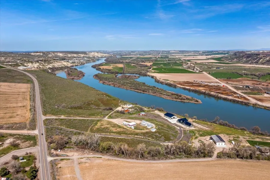 Perched atop a bluff, this stunning 5-acre parcel boasts panoramic views of the Snake River and Owyhee Mountains. The level building site includes two homes and multiple outbuildings, offering versatile living and storage options. Enjoy shared river access via a written easement, including a shared dock on the Snake River for fishing, water sports, and recreational activities.