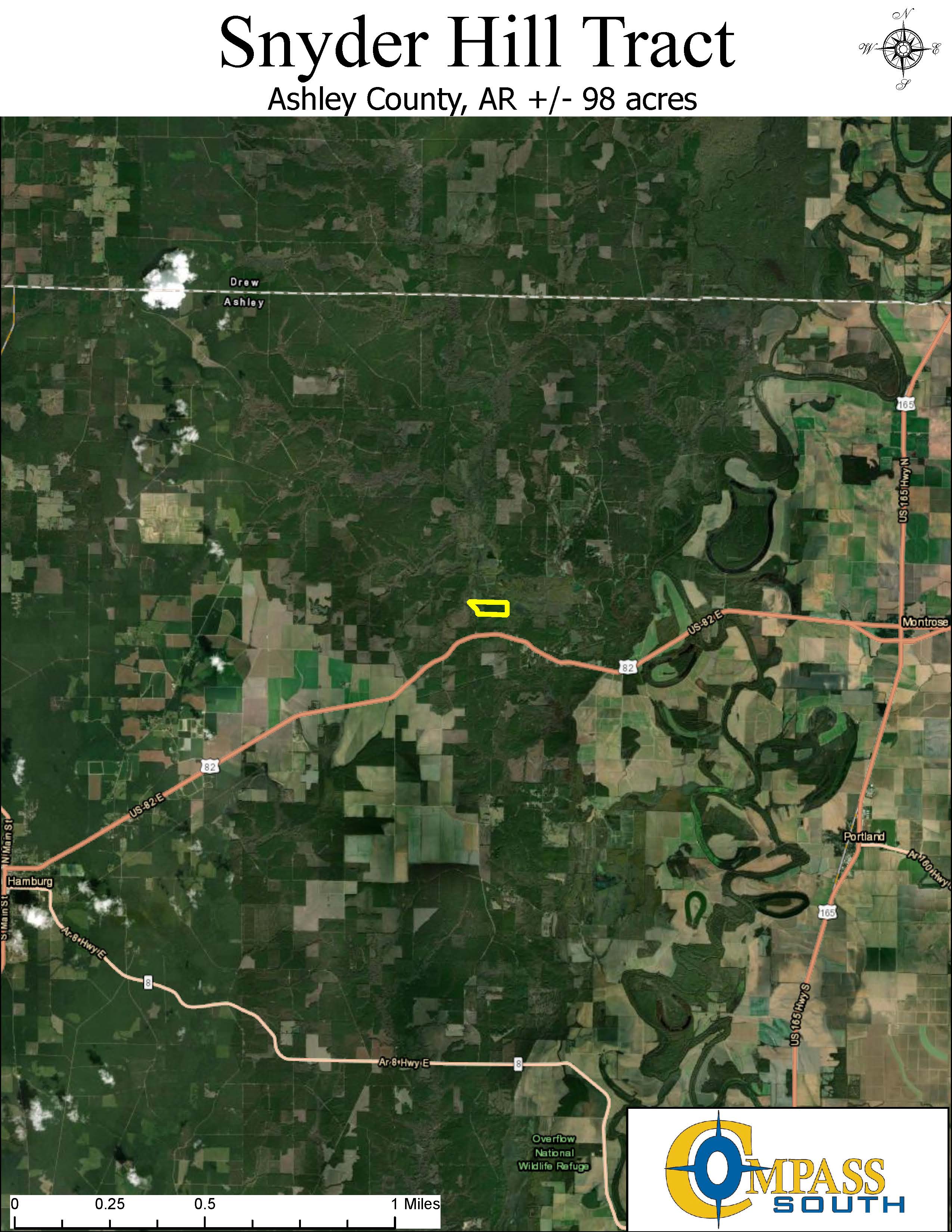 Snyder Hill Tract, a 98-acre property in Montrose, AR, offers a unique opportunity for timber investment and outdoor enthusiasts alike. Conveniently located just 45 minutes from Monticello, AR, and centrally situated between Pine Bluff, AR, and Monroe, LA, this tract combines accessibility with natural beauty.