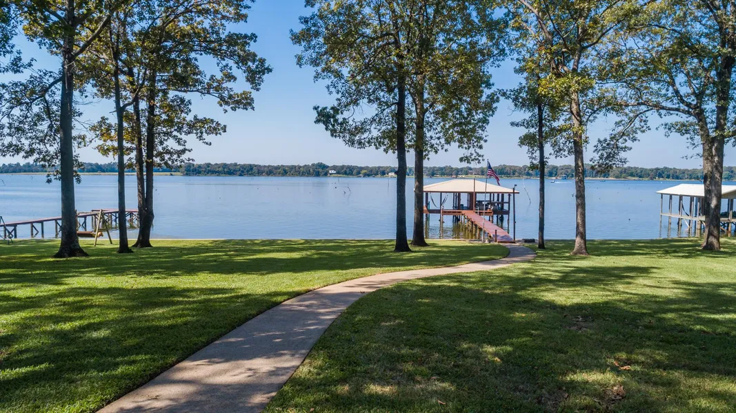 So, You Want To Boast A Little? As long as you can remember, you really wanted to be able to boast about something. Maybe it was your car or your career but was it ever your home? Make this home yours and you can boast to your hearts content. You will first notice it when you drive up. How many homes have you ever lived in, no, how many homes have you ever known that had a six-bay garage not to mention it being on the water and a waterfront home on the world-famous, large-mouth bass, fishing lake, Lake Fork? The garage is over 1800 sq. feet. Now step inside the home. How many homes have you owned that had 2 living rooms, both with built-ins? One with a wood burning fireplace and the other a wood burning stove? How many homes on Lake Fork have a view like this home? It is truly panoramic, with almost 60 feet of glass going across the lake side of the home. Your lake view will be the envy of all your friends, family members and business associates. When was the last time you were cooking in your kitchen and looked out across wide open water? This kitchen has granite countertops. It has a recessed ceiling and recessed lighting. It has a moveable, kitchen island with a granite countertop and with electricity running to it. It has a stainless-steel refrigerator, double ovens and built-in microwave. For those who really like to cook, there is a pass through right to the dining area and a 5 burner, gas cooktop. You want to show off your bartending skills, you can, with your wet bar for mixing great drinks and entertaining your guests. This home has three bedrooms and three bathrooms. Two of the bedrooms are over-sized, easily making them into two, master bedroom suites, one downstairs and one upstairs. Now lets step outside. You have almost 1000 feet of decking with half of it covered and half open air. Insects? No problem. This home has a misting system. The home sits on 2 waterfront lots with approximately 300 feet of shore line and bulk-head. There is a fishing pier and then you have your double-slip boat house with electric slips in both slips. Better bring your tape measurer because you are not going to believe this. When the lake is full, the depth of water in the slips will range from 11 to 12 feet deep. Now how many waterfront homes on Lake Fork can say this?