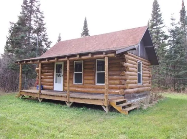 One room cabin 12 inch logs with loft and covered deck Secluded well wooded 10 acre of prime hunting land and short walking distance to thousand of acres of Douglas County Forest land. Set up with gas lights & electric from a generator, not included. Includes most furnishing $49,900