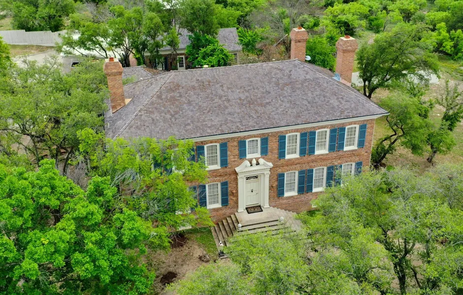 The Sonora property (also known locally as the HUNT House) includes a two story Colonial Williamsburg style single family home with multiple improvements located on a 25.305 acre land tract just outside the city limits of Sonora, TX. The main house is 5,910 sq. ft. of livable area, 5 bedrooms, 4 baths. A guest house has 978.91 sq. ft. and has 2 bedrooms and 1 bath.