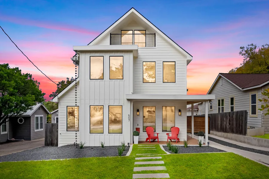 Upstairs, three beautifully appointed bedrooms, two refined bathrooms, and a versatile space that can serve as a lounge, media room, or home office provide thoughtful accommodations for modern living. Outdoors, a peaceful patio overlooks a sparkling Cody pool, perfect for stylish entertaining or quiet moments of relaxation. A detached two-car garage completes this impeccably curated property.