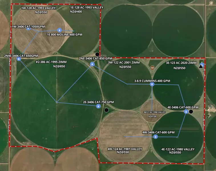 Located West of Dalhart, Texas, the South farm offers great opportunity. This farm consists of approximately 1,365 gross acres with 1,115 irrigated acres. Center pivots include five Zimmatic systems and three Valley systems. There are eight irrigation wells providing an estimated total output of 5,300 gallons per minute. The farm is also setup for winter cattle grazing with stock water available at multiple locations across the property. The house in the Northeast corner of section 82 is also offered as part of the sale. Contact Coby today to discuss this property in further detail. It deserves your serious attention.