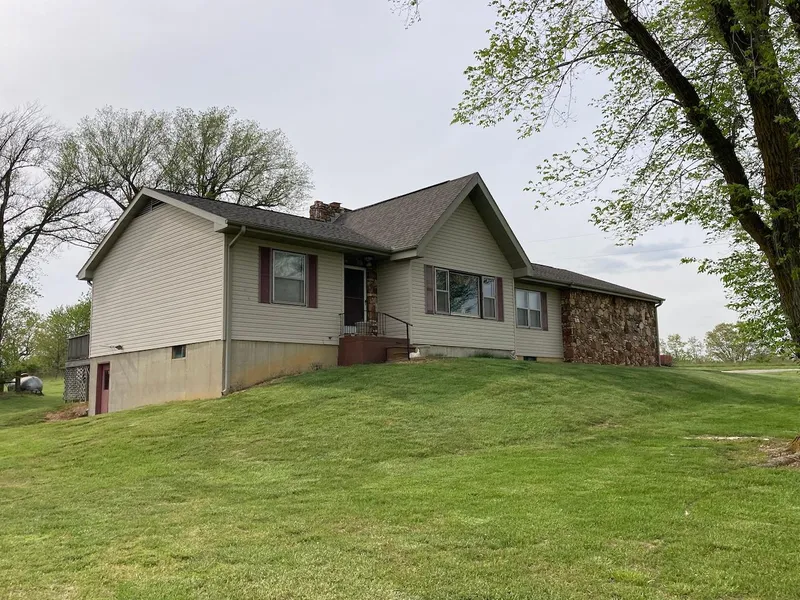 40 Acre farm in South Central Missouri - The land is 85% open and in grass, there are 3 ponds, 45x60 barn, fenced on 3 sides, county road on 2 sides and 3/4 mile off US Highway 60. The home is a 3 bedroom, 2 bath, living room with wood-burning fireplace, central heat and air, 1 car attached garage, full unfinished basement, the hilltop setting provides beautiful views, big yard, peach and apple trees.