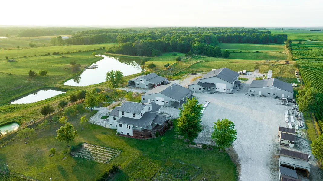 Located on the east edge of Beverly is this country home with numerous outbuildings. The property is improved with a 3,120-square-foot home that has seven bedrooms and three full bathrooms. There are three bedrooms on the upper level along with a full bathroom, and the main level has two bedrooms and one full bathroom along with a large living room, beautiful kitchen, and dining room. The walkout basement has a full bathroom along with a partial kitchen and two additional rooms for bedrooms. There is also a wrap-around porch on two sides of the home. That attached one-car garage possesses two sinks and a water hydrant. There are several outbuildings: a 60’x60’ with gravel floor, a 45’x60’ with a concrete floor and a 15'x23' office and half bathroom, a 45'x45' shed with two lean-tos on each side, and a very nice 60’x90’ heated and insulated shop. The heated shop has an office area and storage room along with 18’ tall sidewalls and a large overhead door. There is a 2-acre stocked pond adjacent to the house, which has a large fishing/swimming dock and offers great fishing for bass, bluegill, and catfish. There are approximately 20 acres of open farm ground that are being used for hay production at this time but could be converted to row crop production. Looking at this property from a hunting perspective, this property sets up well for bow hunting. The fields and topography allow you to easily access various stand locations, with the heart of the property being your core area. There are several areas on the north side that could be planted into food plots and several large oaks that would make for great stand locations. There are several acres of thick bedding cover on the western side of the property. There are several trails throughout the timber that allows for easy game retrieval or ATV riding. If you are in the market for a large home and acreage or looking for a place to call home base for your farming operation, this is a must-see. For more information or to schedule a private showing, reach out to Marlee Schultz or Tyler Sellens today.