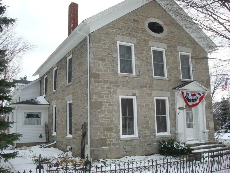 Spacious Limestone Colonial Home in the village of LaFargeville. This solid home built in 1830 has so much to offer. Nice yard with this acre lot that has mature trees, located in a great setting about 20 minutes from Watertown and 15 to the St. Lawrence River. Paved drive, attached garage & separate detached 1 car. Newer roof, windows, furnace and kitchen to name a few recent improvements. Enjoy the 3 season sun porch off the formal dining room with beautiful chandelier & hardwood floors. You will love the breakfast room which leads into the large living room with fireplace. Large bedrooms and 2 full baths plus laundry on second level. You really need to see this one to appreciate all that it has. Rare find with village amenities in walking distance.