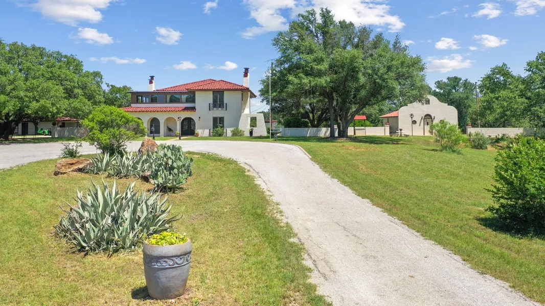 Situated on 54 fully fenced acres, this estate offers a blend of Spanish charm and refined living. The home, guesthouse, and horse facilities provide a serene retreat all overlooking the massive pond. The main residence features spacious living areas with tasteful accents. Downstairs you will find two living areas, a massive kitchen, a full bathroom and an office which could easily be converted into an additional bedroom. The kitchen boasts custom cabinetry, quartz countertops and high end appliances. Upstairs you will find 3 bedrooms, each of which have en suite bathrooms including custom tile showers with plate glass doors. The upstairs includes an enclosed patio with access off of the primary bedroom. There is a one bed one bath guest house, which has its own patio overlooking the large pond. The property includes 3 ponds, a workshop, a hay barn and 6 horse turnouts each of which have their own loafing sheds. The home underwent an full remodel in 2021.