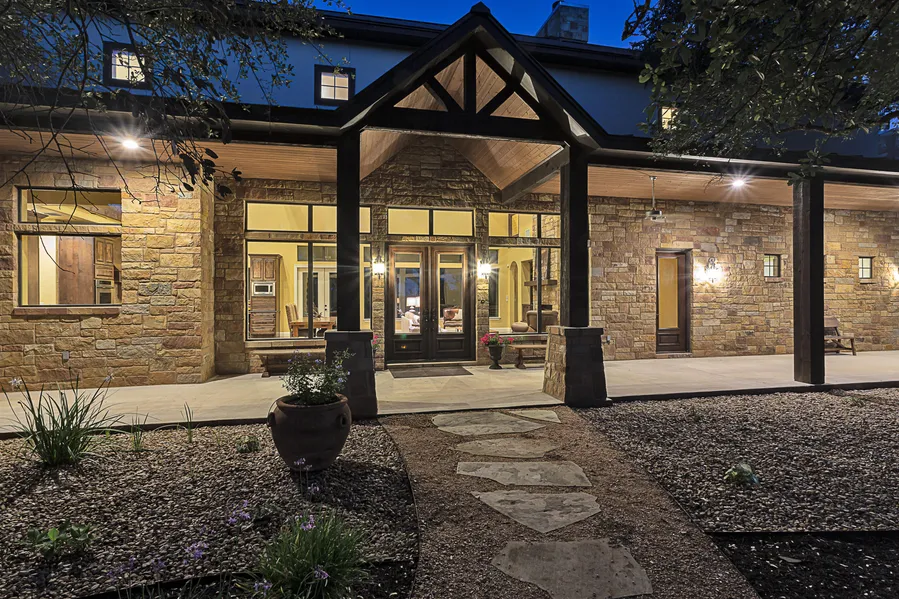 Own your own slice of Hill Country heaven! This property is nothing short of spectacular and it is perfectly complimented by the high-end custom home with pool and wonderful equestrian facilities with Barnmaster stalls, arenas and trails. The home perfectly takes advantage of the views and gorgeous sunsets. Finished out to perfection, the home features a great room with 2-story tall ceiling to allow for walls of windows, a stunning fireplace that is the heart of the room and features you won't find anywhere else. The chef's kitchen offers a massive center island and granite from South America. Impressive master that is located downstairs plus there are 4 more bedrooms, one is a true guest suite with kitchenette. Relaxing outdoors spaces with wrap-around porches & resort-worthy pool with waterfall. This Ag Exempt property is gated and features 15.65 beautiful, rolling acres with wet weather creek and fields of wildflowers that look like they were painted with a brush.