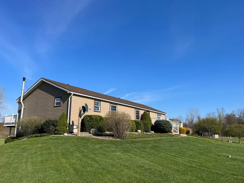 Whitetail Properties is pleased to present your dream property in the prime country of Kent, NY! Just minutes from Albion, NY, this large acreage property is a nature lover's paradise, offering beautiful views from every window of a highly manicured landscape. This property has been expertly managed for deer and wildlife and has a history of producing trophy deer. Upon approaching this private oasis, a large looped driveway of 840 feet leads you to an elevated three-bedroom, two-bathroom ranch home with 1909 sqft of living space. The home is a manufactured home with 2 x 6 walls and has undergone a complete whole-house interior renovation in 2023, making it ready for you to move in and enjoy. Natural light bathes each room with the home's complement of windows and three sliding doors leading to two full-length decks to enjoy morning coffees or afternoon iced teas overlooking your yard and food plots. The kitchen is an open-style kitchen with a custom build island convenient to the great room and dining room. The great room has an LP fireplace and a walk-out sliding door to the south deck, while the dining room has a sliding door to the east deck. Both decks overlook tranquil green spaces of lawn and food plots where deer and turkey are observed daily. The family room has a large picture window for more nature and light and leads to the owner's bedroom and ensuite bathroom, where another walk-out sliding door connects to the east deck. The exterior of the home has been updated with new siding in 2019, a new roof in 2017 and new decking in 2016. The appliances have also been updated, so you can enjoy the convenience of modern amenities. It has a full-height basement with 13 courses of brick, two garage doors, and a man door for easy access. The full-course basement leaves the option to expand your living space if desired. This property also has an impressive 40 x 40 pole barn built in 2015 with concrete floors and electricity to house your cars, ATVs and yard implementsmore than enough space for tractors, mowers and extra storage, etc. The property has municipal water and septic on site, and LP gas and wood heat sources, so you can stay warm and comfortable all year round. A robust and well-groomed trail network winds its way through the acreage of the property connecting multiple food plots where tree stands and high houses are strategically placed for stellar deer hunting. The trails are all lined with planted oak trees that will produce mast crops of acorns in years ahead. The property has a pond and a large central food plot, where corn and rotational plantings can be managed. The owners are true land and wildlife stewards and have planted over 800 oaks, hazelnuts, chestnuts, persimmon, and apple varieties, to name a few, leading to hunting blinds, making it perfect for hunting enthusiasts. Just one look at the owner's deer collection is proof of what quality management can produce. The property is enrolled in the 480A program, which offers tax exemption until 2026. The property is easily accessible with a 2290 ft frontage on Sawyer Road and a second access of 95 ft on Rt 104. You can stay connected with WiFi available and enjoy cell service on the property. Don't miss this opportunity to own this rare dream property! Priced well to sell!