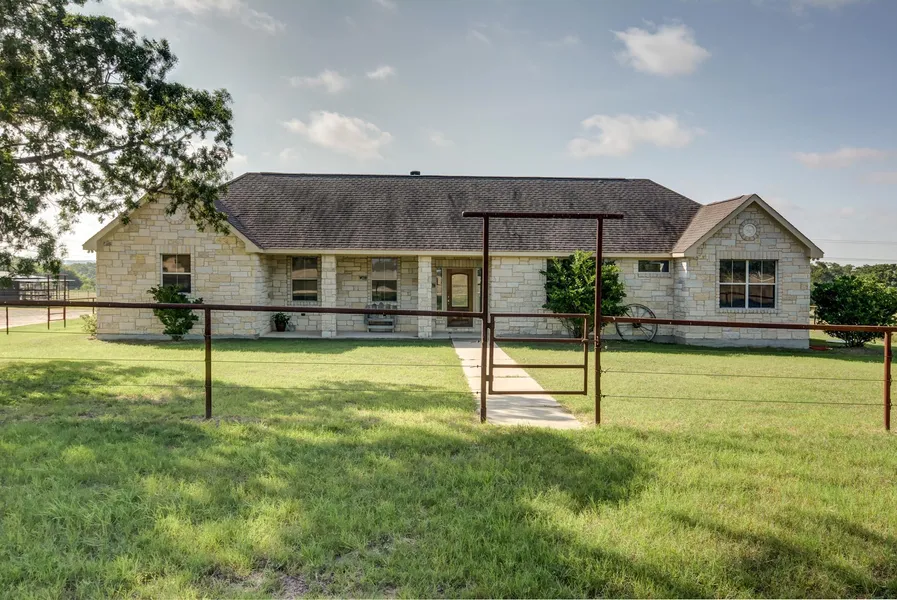 28 acres with a Texas limestone, 4 bedroom 2.5 bath home, built by Nalle Custom Homes! This quality home features rock on all four sides, custom cabinets, fresh paint, vinyl wood flooring, vaulted/high ceilings, arched hallways, stone fireplace, and has been well maintained! The master suite has vaulted ceilings, jetted tub and large walk in closet. Large laundry room connects to a two car garage. Enjoy the 20x 20 covered patio perfect for entertaining or viewing the wildlife! Large front/back yard surrounded by pipe fence. Large 2,400 square foot barn with water/electricity, a concrete storage area and a spacious tack/feed room, 3 covered pipe runs, and attached pipe cattle working pens! The barn has ample storage area perfect for all of your hobbies! Property has abundant road frontage with a nice pipe entrance/cattle guard. Open pasture, trees, fenced on all four sides, cross fence...