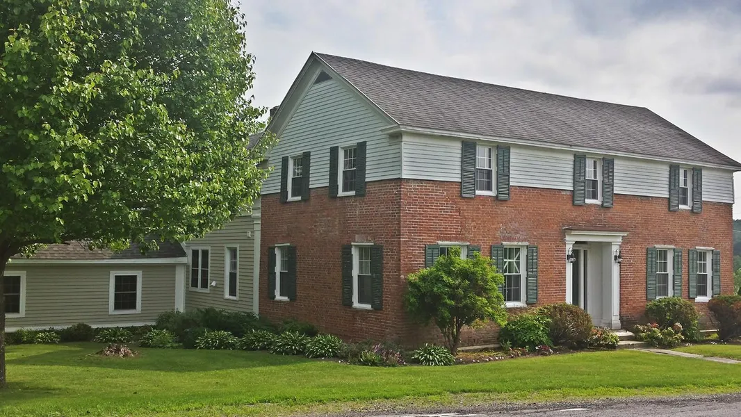 A truly dynamic property intimately situated in one of the most beautiful valleys in Shushan, a short jaunt to the famous Battenkill & the border of VT. This historic brick colonial, set on 23 acres of land, offers tremendous opportunities, perfect for a B&B or even a 2-family home, w/ 6 bdrms, 4 full baths, & 4000 sq. ft. of living space w/ a magnificent backdrop of open, rolling farmland, 2 ponds, landscaped grounds, mountain views & outbuildings. Property is comprised of 2 parcels - 233.-1-34 & 34.12.