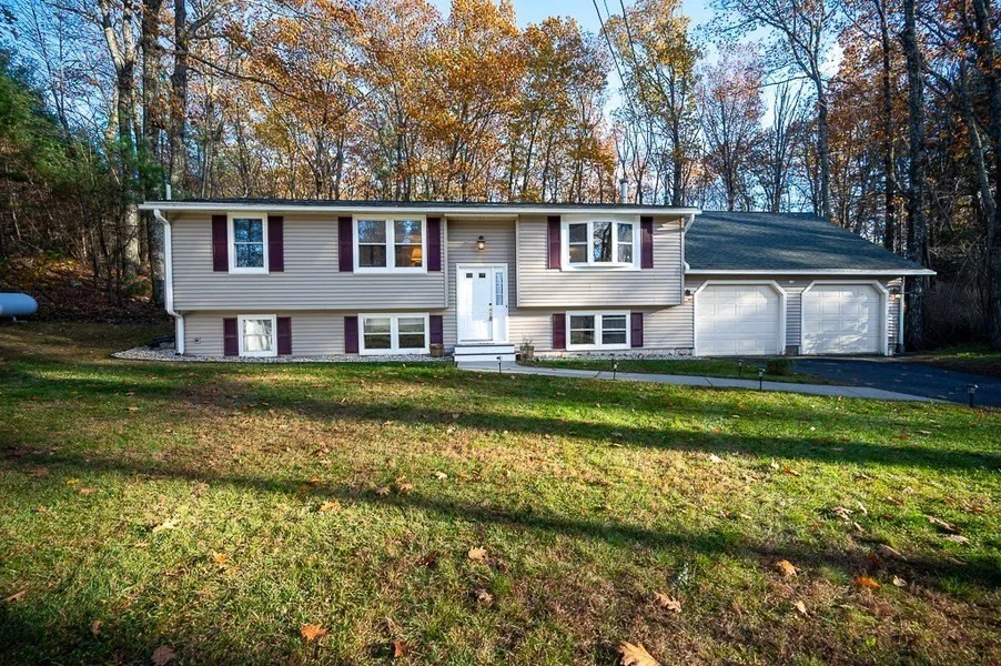 Beautifully updated & move-in ready, this 3-bedroom, 1-bath home in Belchertown sits on a private 2.16-acre lot with a spacious, level yard surrounded by peaceful nature. The recently remodeled kitchen features granite countertops, a large island with seating, & refaced cabinets, flowing into the open-concept dining & living area. Three bedrooms & a full bath complete the main level. The finished basement includes a cozy family room with a wood stove, a bonus room, & access to the attached 2-car garage. Updates include new interior doors, fresh paint, stainless steel appliances, a new well pump, & serviced central air & furnace. Outdoors, enjoy a new patio/deck, bay window, new gutters, front privacy & rear chain-link fencing, & plenty of space for play or entertaining. Professionally maintained with roof/exterior washing, cleaned ductwork, swept chimney, & ongoing pest control—this home...