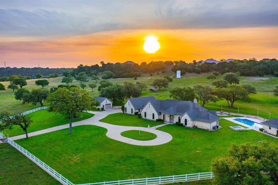 Majestic Ranch with Breathtaking Views for Miles. The High-Country Split Oak Ranch set in the Heart of Texas is 293 Acres of Pure Country Perfection that promises to sweep you off your feet from the moment you enter the front gate. Between the Serene Setting, the Incredible Old Oaks scattered throughout the Meticulously Cleared Land, the Beautiful Varieties of Wildlife, and the Unbelievable Views for Miles, this Longtime Family Estate wins your heart before even exploring up the paved roads. Spread over the acreage you will find Two Beautifully Built Custom Homes, a Waterside Party Pavilion, a RV Carport & Storage, Multiple Garages and an Industrial Workshop plus amazing amenities-a Fabulous Pool made especially for Volleyball and Pool House with a commercial griddle for that perfect burger poolside, Guest Quarters with a Walk-In Sauna, a Thoughtfully Constructed Dog Run for your fur bab...