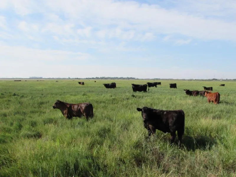 The Spool Stockyards Property has a mostly level terrain, with a general slope to the east to a large low lying area on the east side of the property. A large earthen pond has been constructed in this area which will hold water in times of significant rainfall. This entire property is in grass, with the grass turf being in excellent condition.