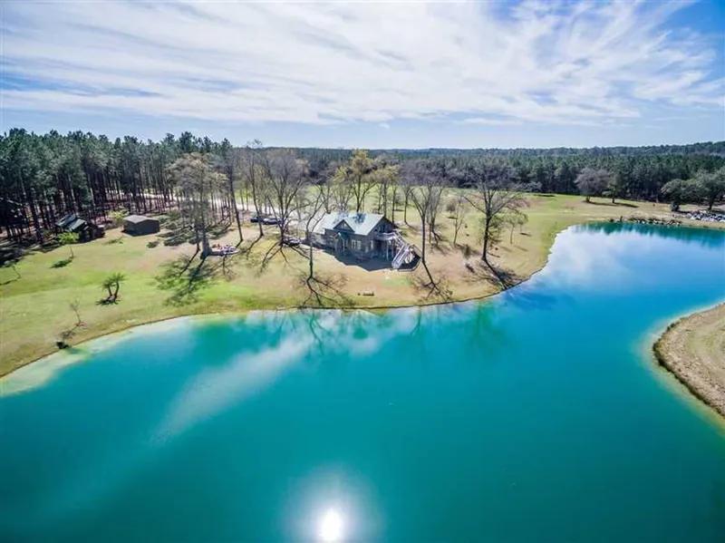This custom 3 bedroom, 3 bathroom lodge is elegantly appointed from the gourmet chef's kitchen, open to a stunning great room with coffered ceiling and limestone fireplace, to the adjacent dining room. The kitchen is outfitted with custom cabinetry including hammered copper sinks, two dishwashers and high end appliances that make it great for entertaining. Large windows allow abundant natural lighting throughout and wonderful views of the outdoors. A large game/rec room opens onto a back porch where amazing sunsets can be viewed in the evening overlooking the 3 acre fully stocked pond just steps away for freshwater fishing and water sports, and don't miss that morning sunrise over the 8 acre field to spot those whitetail deer or long bearded turkey.