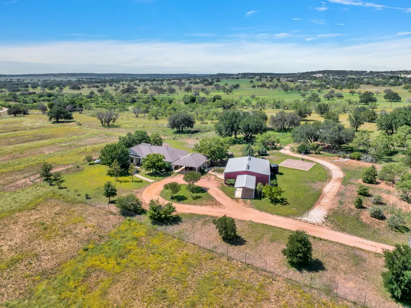 Situated in a picturesque agricultural residential zone, just a 15-min drive southwest of Fredericksburg. From Fredericksburg, take Hwy 16 south, turn right/west on FM 2093. After 6.9 miles turn left on Morris Tivydale Road. Go 0.7 miles. The private gated entrance to 686 Morris Tivydale Road is on your right.
