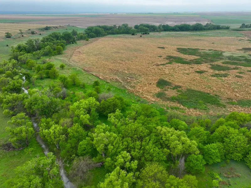 This hunting property is situated on Spring Creek, only one mile west of Nicodemus, Kansas, and offers a prime opportunity for hunters and outdoor enthusiasts. With an ideal location and diverse features, this 480-acre property includes tall CRP grass, ample creek frontage, and various types of mature hardwoods and vegetation, making it a haven for whitetail deer, turkeys, and upland birds.Boasting nearly 1 miles of Spring Creek running through the property, the spring-fed creek bottom provides fresh water year-round, with large cottonwoods, mature cedars, locusts, and other hardwoods lining the creek's edges. Timbered creek bottom land is at the top of every deer hunter's wish list, but finding a "spring-fed" creek with running water, even during the drought years, is a rarity in Northwest Kansas making this property a diamond in the rough. Deer sign can be found throughout the entire c...