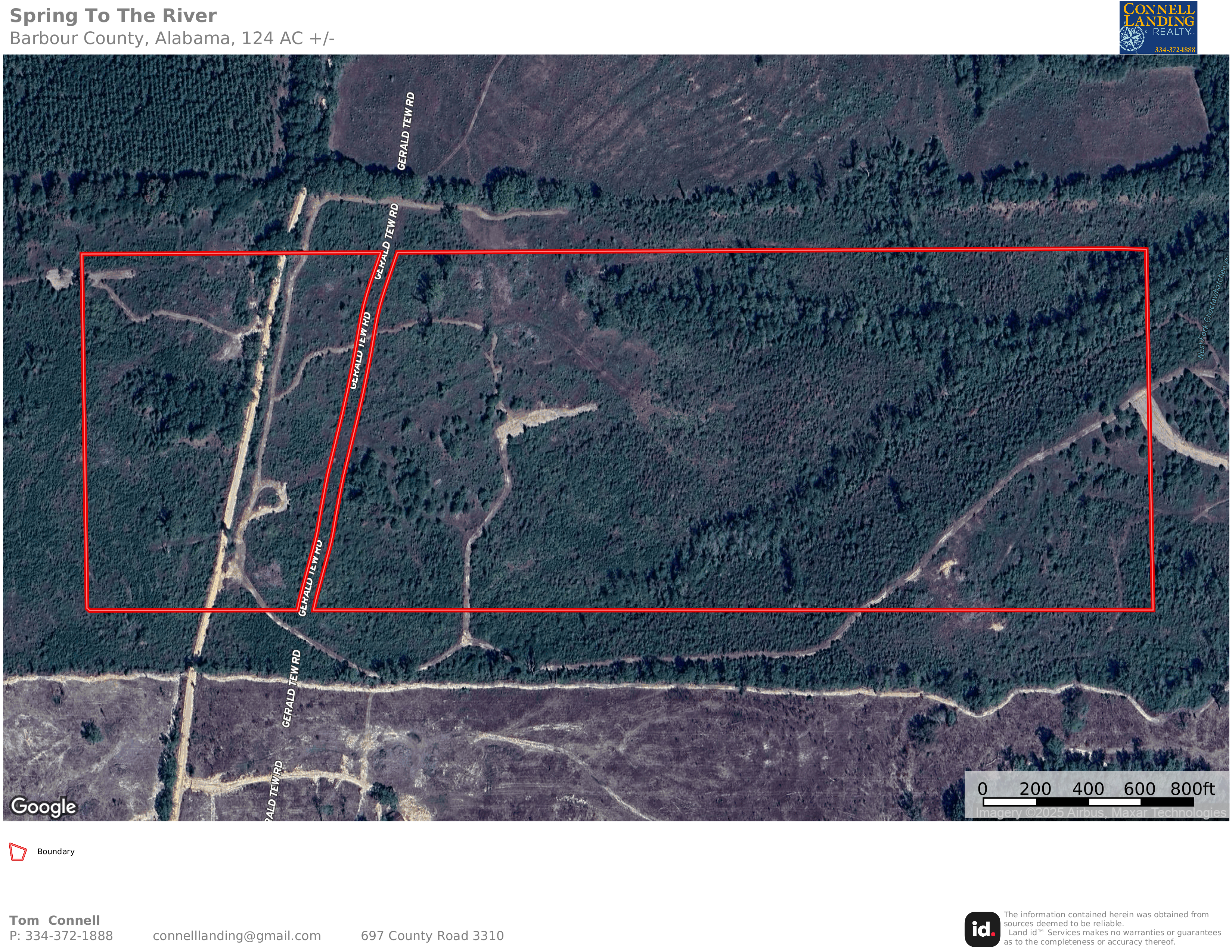 This is 124 acres of well-priced property in Big Buck Country! Approximately 65 acres of this farm were recently burned and replanted in Longleaf Pine. This property has over 2,700 ft of Barbour County Road frontage on county-maintained Gerald Tew/ Hagler Mill Road. This farm is comprised of 30 acres on the west side of the road and 94 acres on the east. Of which the easternmost 60 acres are a mixture of meadows, hardwood, and natural pine. A year-round spring runs out of the ground eastward to the West Fork Choctawhatchee River. This property does not go all the way to the river, but it is within 200 ft in some areas that are touching the river. This will give you access to great riverbottom hunting without personally owning the flood issues of river property. Only 1.3 acres are in the flood zone and is in the northeast corner of the property.
