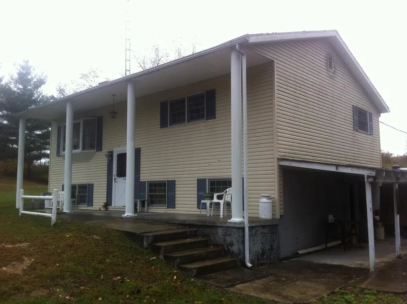 Bi-level on 1 acre lot, featuring living room, kitchen, 2 bedrooms and bath on the main level and family room with a woodburning fire place, utility, furnace room, 1/2 bath on the lower level. Propane furnace.