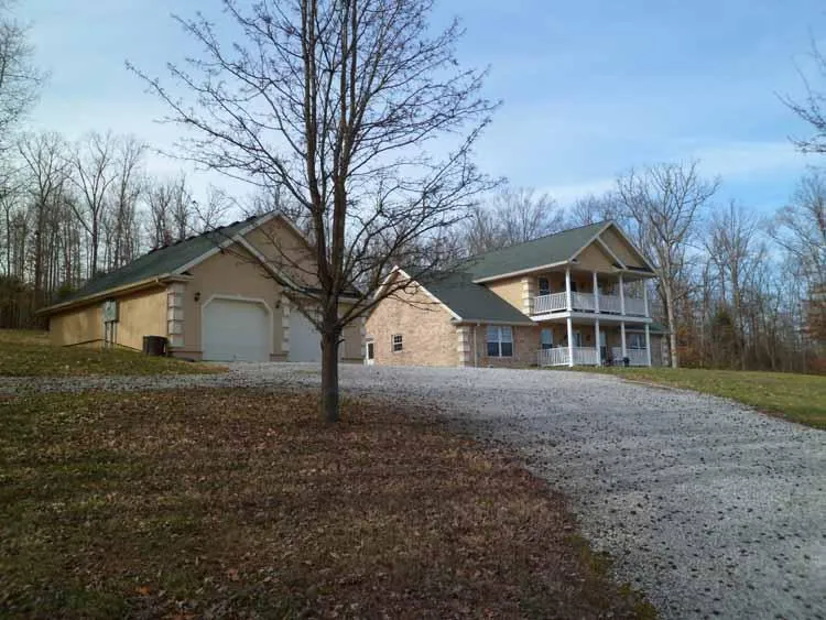 Back on the market. Like new home on 11.98 acres m/l with garage and barn/shed with apartment. Custom built home with over 2200 sq. ft. of living area consisting of large living room with built-in bookcase and entertainment center with fireplace open to spacious kitchen with outstanding staggered cabinets, large bar area, open dining area with Trey ceiling and all newer matching high end kitchen appliances, large master suite with covered deck and large full bath with double vanities, shower, whirlpool tub and large walk-in closet, nice hall bath 3 additional bedrooms, rear deck, 1st and 2nd level front porches large utility room and lots of storage, detached 2 car garage with full bath, kitchen hook-ups plus heat and air. Nice barn/Shop has 2nd level with storage and living quarters. The land is outstanding being wooded and open with great views. Located 8420 St. Joe Road.