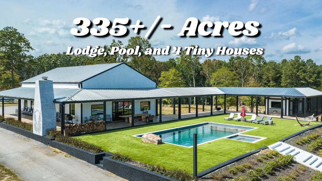 Stagg Valley Farms, a stunning 335 acre high fenced property, located about an hour west of Atlanta, includes an entertainment lodge, four inviting tiny houses, a refreshing pool, picturesque grounds, a pond and 2 new Green Houses. The property is perfect as a private recreational and hunting retreat, a wedding and event venue, Airbnb property, landscape growing facility or other opportunities. It also has an additional adjoining 241 acres available that could make the total property up to 583 acres.