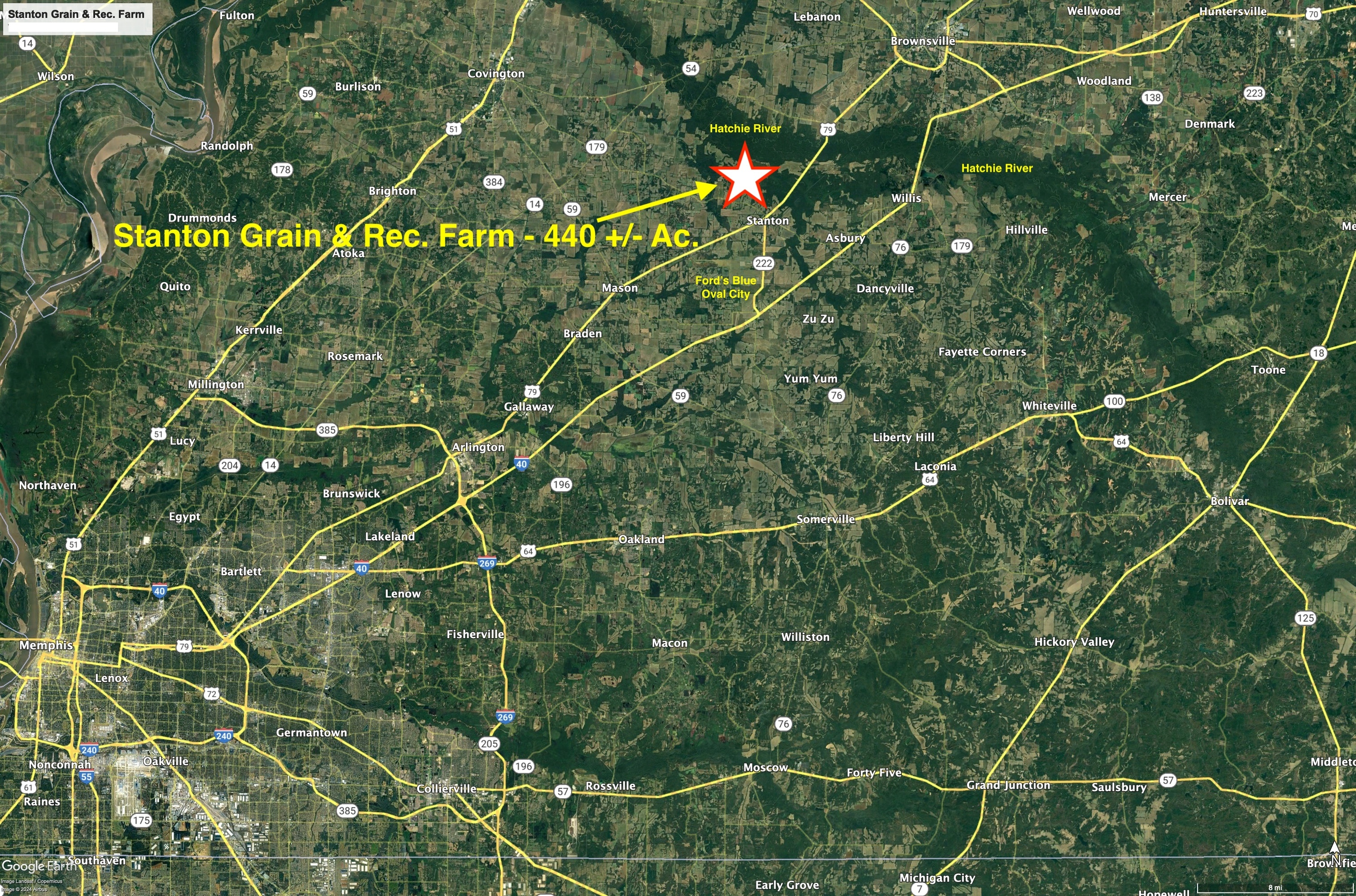 The Stanton Grain & Rec. Farm is an agricultural investment property that offers exceptional recreational opportunities. The farms location is convenient to Memphis and Nashville being less than 10 minutes north of Exit #42 on I-40. Additionally, the farm is less than 3 miles from Fords Blue Oval City project which could allow for some exciting appreciation potential!