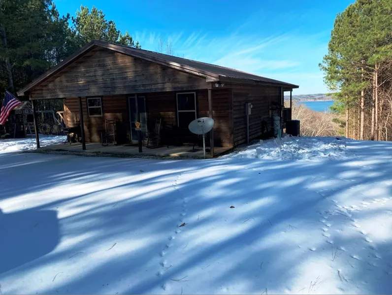 A highlight of the property is the fully furnished 2-bedroom, 1-bath cabin, providing a breathtaking, overlooking view of Bear Creek Lake. Accessible via a well-maintained -mile gravel road with underground power and water, the cabin serves as a comfortable retreat, offering both convenience and tranquility.