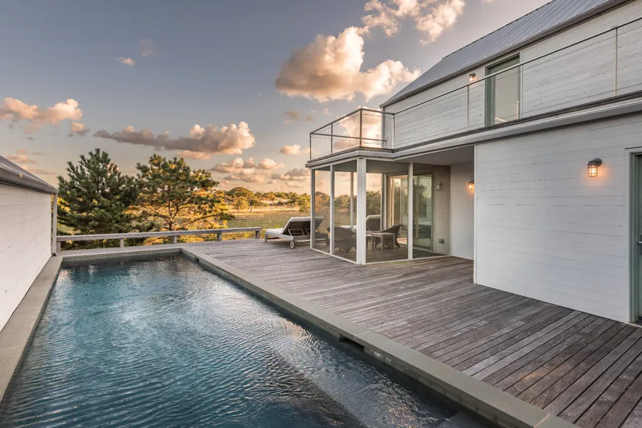 Bordering a sprawling 130± acre reserve, this exceptional retreat designed by Stelle Lomont embodies the essence of Amagansett's "Promised Land." Thoughtfully designed, the home features three bedrooms, two versatile loft spaces, and two and a half baths. The open-concept living, dining, and kitchen areas capture breathtaking southern views of the reserve, while the second floor offers glimpses of Napeague Bay. Expansive decking and a screened-in porch provide the perfect setting to take in the surrounding meadow views. Outdoors, a heated 10' x 34' gunite pool and a secluded outdoor shower complete this serene escape. Ideally located just moments from the Atlantic Ocean, Napeague Bay, and the Walking Dunes, this home is truly one of a kind. Architectural Narrative from Fred Stelle, Founding Partner, of STELLE LOMONT ROUHANI ARCHITECTS. "The Cranberry Hole Road house is a simple reconstru...