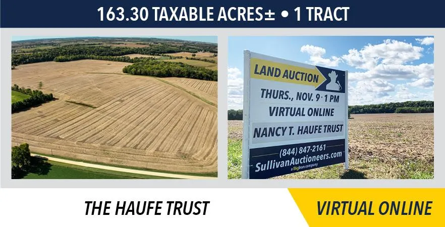 The real estate contains a total of 163.30 taxable acres, will be sold in 1 tract, and represents productive tillable cropland.