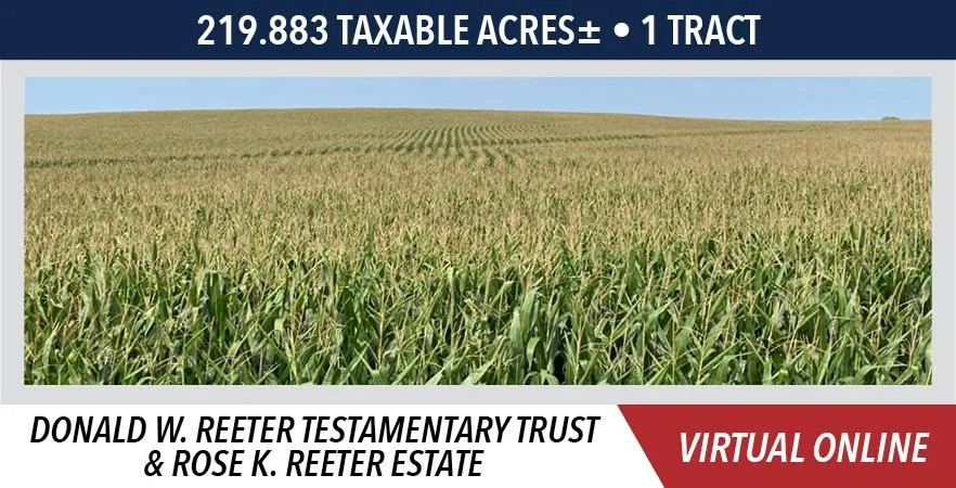 The property contains a total of 219.883 taxable acres and will be sold in 1 tract. The farm represents nearly all productive tillable farmland.