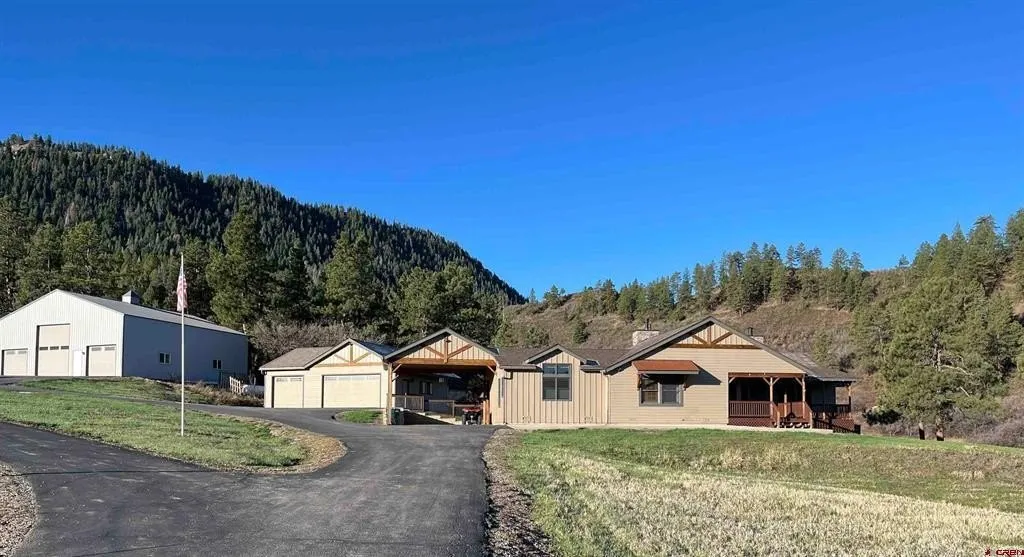 Matthew Arias, Keller Williams Realty Southwest Associates, LLC, C: 970-749-3977, , Welcome to Sunset Lane, where the romance of the West is alive and well. Mountain vistas, fenced pastures, quite forests crowned by a modern western ranch house. Step inside and you will feel your shoulders start to relax and a grin begin to spread across your face. The great room and boss kitchen are well designed for comfort and entertaining. The built-in wood stove and stonework chimney demand your attention and guide you to the covered porch. There is a large stone pass through from the great room to the kitchen, keeping the cook in the social action. The kitchen boasts a Thermador range and oven, a Broan extraction hood vented to the outside, a Kohler built-in pasta pot and a panel-built refrigerator. Custom cabinets and granite counter tops round out this stunning cookhouse. Off of the kitchen are two dining rooms that can accommodate everything from ranch breakfasts to holiday feasts. This home was made to entertain guests and relatives! The oversized primary bedroom is your private retreat. Located on the main level of the home, this bedroom has an outdoor sitting deck, a large ensuite bathroom, a gas logs fireplace and expansive closet. A well-appointed home office is adjacent to the primary bedroom. Two more bedrooms, each with their own bathrooms round out the main level. Downstairs you will find another large entertainment room with an included pool table, built-in, wall television unit and swinging doors to the outdoor hot tub. Two bedrooms, a full bathroom and another office/gym area are also downstairs. This home is perfectly placed on 17 acres to enjoy world-class views and wildlife galore. The property is a horseman's haven with rolling pastures, a 18x36 horse barn and a 46x48 wood framed and insulated shop with RV hookups inside. This Southwest Colorado property truly has to be seen in person to fully appreciate the privacy, natural beauty and aura that is hard to find anyplace else.