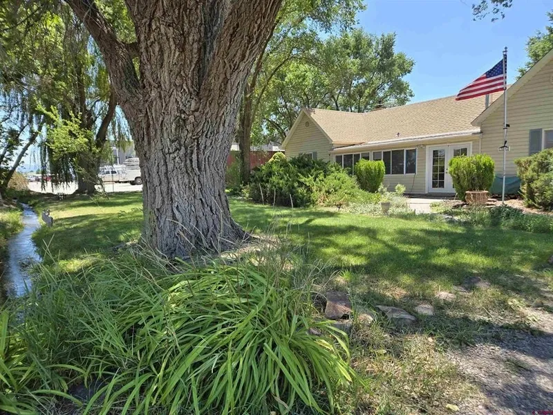 Judy L Darwick, United Country Sneffels Realty, Cell: 970-729-2230, , The adage we have all heard about Real Estate is "Location, Location, Location"!!! This certainly applies to this home. "Location" because it is so easy to access at all times of the year, close to Montrose shopping, all of Montrose's services, a great airport, and central to the most beautiful part of Colorado's mountains. "Location" because of the creative possibilities of having a home close to town, having a home/office business, and othr options. "Location" for this picturesque, charming home setting among beautiful shade trees enhanced with .79 acres of irrigation water. 3 bedrooms, 2 full bathrooms are all on one level. One of the bedrooms is currently used as an office. Kitchen appliances include stainless steel refrigerator, stainless steel double ovens, stainless steel microwave and electric cooktop...