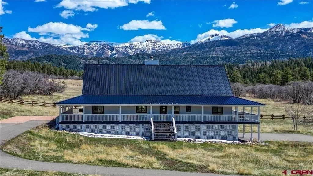 Kalei Pitcher, Jann C Pitcher Real Estate, CELL: 970-759-8165, , : A RIVER RUNS THROUGH IT!!! Discover the elegance of a luxury farmhouse nestled in a serene alpine setting, where relaxation meets breathtaking beauty. Encircled by National Forest on three sides, with the Rito Blanco Creek & Echo ditch meandering through, this property offers a unique escape--both loaded with fish! Interior was recently painted and updated to really enhance your high mountain experience. From the expansive wrap-around deck, enjoy stunning views of Square Top and East Range, as if they're right in your backyard. This meticulously crafted home features three master suites, plus two additional bedrooms upstairs, each with a private bath. The spacious Great Room seamlessly combines a kitchen, dining, and living area, anchored by a two-sided fireplace for cozy gatherings. With triple-pane windows, new ProPanel...