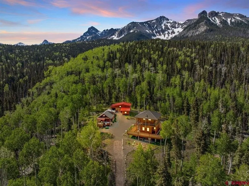 Tate Rogers, Rogers Real Estate Group, LLC, C: 970-729-2366, , Have you ever wanted to own a private back country lodge? This could be exactly what you've been looking for. 66 Wildwood Lane is a one-bedroom modern home built in 2019 and situated on a high mountain ridge at 9800' elevation. Architecturally, the home is inspired by the fire lookout towers of the 1930's. Complete with radiant in-floor heat, stainless appliances, state of the art solar electricity, and rich woodwork. Abundant windows allow tons of natural light and views in every direction. This beauty sits upon an 8 acre lot which directly borders the 16,566 acre Mt. Sneffels Wilderness area. Each morning, from your bed, you'll wake up to amazing views of North Pole Peak and Mt. Hayden. In addition to the main house there is an adorable, rustic guest cabin hand crafted with logs harvested from the property. With 2 sleeping lofts and a great room it's perfect for your guests or extended family. The exterior of the guest cabin was professionally stained and re-chinked in 2024. The sale will include the adjacent and vacant 5 acre parcel which affords you an even greater measure of privacy and a total area of 13 acres. This lot has a separate well already drilled and has beautiful live water running through it. There are several good flat building sites. The barn/workshop is a great amenity for storing and maintaining all your equipment. The barn was also built using logs, beams and boards milled 100% from the property. The Federal land adjacent to the property is a designated roadless Wilderness Area. No motorized equipment is allowed. For the hardy and adventuresome there is nearly endless opportunity for hiking, snowshoeing, back country skiing, and hunting. In the summer months the property is accessed by a well maintained private gravel road. Winter access is via snowmobile or tracked vehicle along the community trail system. Two snowmobiles are included with the sale. By car Ridgway is just 20 minutes away and the Town of Telluride is 40 minutes.