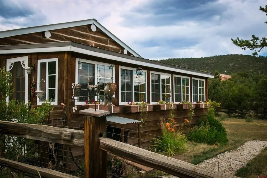 Trisha Taylor, RE/MAX Pinnacle, C: 303-525-7037, , This RARE find is available! A true work of art, this log cabin has been the dedication of it's owner since 1996. This 2 bedroom/2 bath holds too many unique characteristics to describe.... some of the highlights include original interior doors with stained glass and original hardware, newer metal ceilings, stone surround fireplace, period light fixtures, custom cabinetry and custom vanities. The enclosed porch seating area is perfect for either relaxing with a coffee or glass of wine or entertaining a book club. The newer log bedroom addition boasts the primary en suite with reclaimed wood flooring, copper shower and metal ceiling. Additional "extras" include a mudroom at the side entry and a loft for storage or additional niche living area. The exterior of the home includes a fenced in yard inside the nearly 1 acre of land overlooking Del Norte Peak and the Sangre de Cristo mountain range. The french doors of the en suite open up to a lovely sitting area in the yard. There is an additional work studio in the yard with a side room for tool storage. The trails and river are super accessible from the home within a couple minutes drive. South Fork and the surrounding area are surrounded by 95% National Forest with a ski area, live theater, museums, golf course, National Parks, restaurants and gift stores. Short term rentals allowed. Call today to view this "must see" home. The county assessor report reflects 4 lots to the property, please note that lots 6 and 15 are also included in the sale of the property.