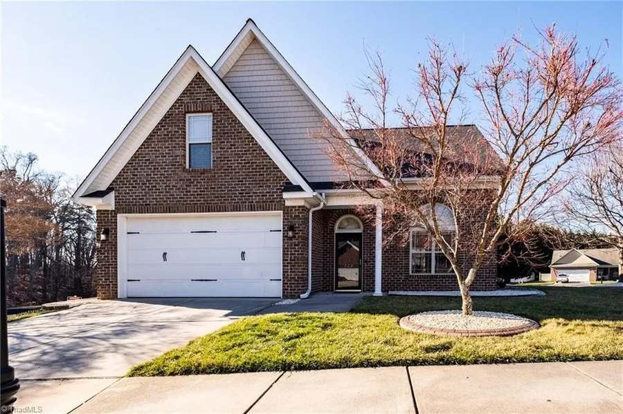 Sought after Stafford Park historic location. Convenient to everything: shopping, medical, entertainment and Greensboro, Winston Salem and High Point. Full brick exterior. Flat entry (no steps) in front and back. Primary bedroom on main level with newly renovated primary bath. Vaulted ceiling and gas logs in great room. Sunny Kitchen exits to patio. Kitchen has large pantry, granite counter tops, smooth top range and double oven. Bonus room has window and could be the extra room you have always needed: office, playroom, media room. Corner lot with privacy on bath sides. Roof 2018, A/C 2012 water heater (50 gal.) 2024. Ring security system. Camera motion in great room. 2 control panels. Windows with sensors. System controlled by phone. Nest thermostat controlled by phone. 1 outside camera above garage and front and back motion lights.
